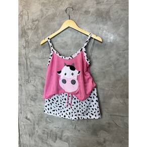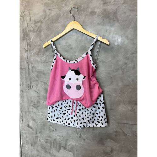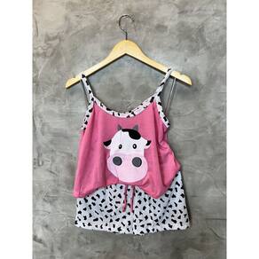 Pijama adulto Feminino em algodão, modelo de verão tipo short doll e blusa em croped, para quem gosta de dormir com um pijama confortável, mas não abre mão da qualidade e de estar sempre bem vestida.