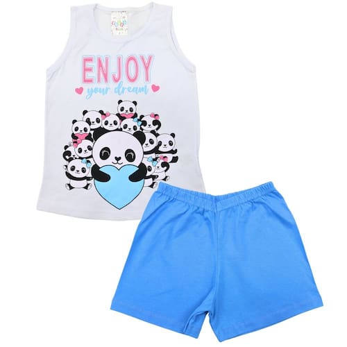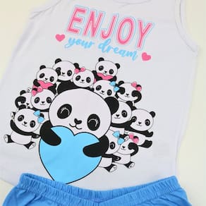 Pijama Verão Regata Menina Ursinhos Panda Infantil