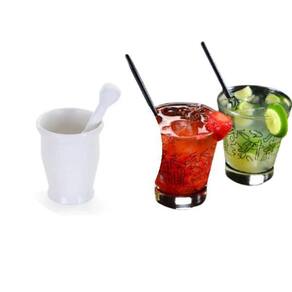 Especificações técnicas: - Material: plástico - Cor: branco - Medidas aproximadas: - Copo: altura de 11,5 cm e diâmetro de 10 cm - Socador: comprimento de 16 cm
