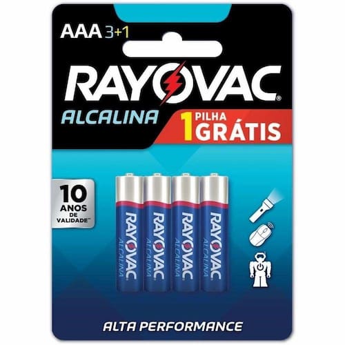 Pilha Alcalina Aaa Com 4 20324 Tamanho AAA Indicadas para aparelhos tecnológicos e com alto consumo de energia, as pilhas Alcalinas Rayovac permitem que você realize suas atividades com total liberdade.