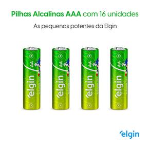 Essa embalagem contém 16 pilhas alcalinas AAA, ideal para aparelhos que requerem descargas de energia rápidas e fortes.