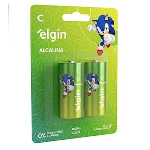 As pilhas alcalinas C Elgin do mascote Sonic são ideais para brinquedos, controle remotos, lanternas e outros aparelhos que requerem descargas de energia rápidas e fortes. Elas foram aprovadas em todos os quesitos e têm ótima relação custo/benefício, você economiza e ainda conta com pilhas de alta qualidade. Entre 11 marcas de pilhas do mercado avaliadas em testes do INMETRO, as pilhas Elgin apresentaram um resultado excelente na relação custo por hora útil. Além disso, elas são testadas periodicamente por laboratórios credenciados pelo INMETRO, para garantir a qualidade e conformidade com a resolução Conama 401.