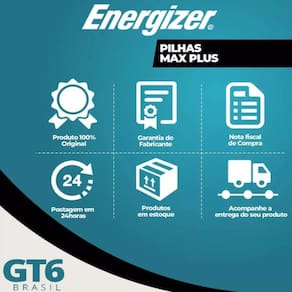 Pilha alcalina m.Plus aaa2 cart 2 energizer Pilha alcalina energizer m.Plus aaa2 cart 2 Pilha alcalina energizer max plus aaa - energia de longa duração As pilhas alcalinas energizer max plus aaa foram desenvolvidas para proporcionar energia confiável e duradoura para os seus dispositivos eletrônicos do dia a dia. Com tecnologia avançada da energizer, elas oferecem maior desempenho e proteção contra vazamentos, garantindo o funcionamento seguro e eficiente de seus aparelhos. Especificações do produto: marca: energizer modelo: max plus aaa tipo: alcalina voltagem: 1,5v tecnologia powerseal tm : protege contra vazamentos e prolonga a vida útil dos dispositivos duração prolongada: até 12 anos de vida útil em armazenamento indicação de uso: controles remotos, lanternas, brinquedos, câmeras digitais, rádios, relógios e outros aparelhos eletrônicos quantidade na embalagem: 2 unidades escolha energizer max plus aaa para garantir máximo desempenho e confiabilidade em seus dispositivos. Energia que dura mais para você Marca: Não Informado