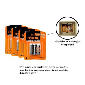 - Tensão nominal: Pilha Alcalina Palito AAA Foxlux 1,617v (padrões do Inmetro 1,5v)