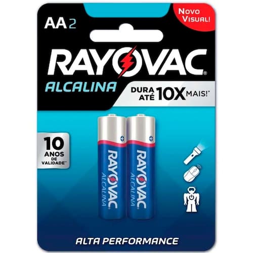 Diferenciais: Embalagem blister com 2 unidades de Pilhas Alcalinas AA Rayovac. Tecnologia alcalina de alta performance. Longa duração e estabilidade de energia. com uma ampla variedade de dispositivos eletrônicos. Marca reconhecida pela qualidade e confiabilidade.