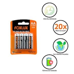 - Sem oscilação de tensão, medição conforme os padrões do Inmetro Experimente e comprove você também a alta durabilidade das Pilhas Alcalinas Pequena AA Foxlux!