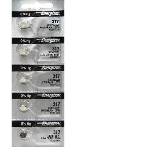 Utilizada em relógios Quartz Fabricação nos EUA Marca Energizer Linha Silver Oxide Modelo 317 Tamanho da pilha SR516SW Forma Botão Formato de venda Cartela Unidades por kit 5 Outros Voltagem nominal 1.5V É recarregável Não Tipo Oxido de Prata Embalagem 90 Dias Marca: Não Informado Ean: 7890925412438