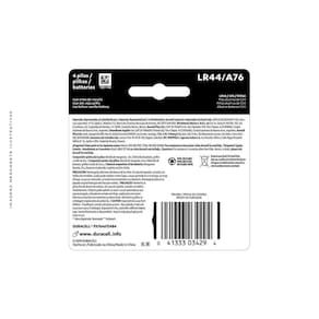 As pilhas alcalinas Duracell LR44 têm energia de longa duração para diferentes aparelhos, como brinquedos, calculadoras, laser pointer, equipamentos de medição, aparelhos de automação para o lar, etc. A tecnologia de Duracell preserva a energia das pilhas que ainda não foram usadas, por até 5 anos.