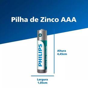 Pilha Comum Aaa tubo Com 40 Unidades Philips R03l40tf/59 Especificações técnicas - AAA - Cloreto de zinco extra Composição química: - Cloreto de zinco - Metais pesados - Sem Cd - Sem Hg Material de embalagem: - Papelão Tipo da embalagem: - Lâmina Marca: Não Informado Ean: 4895229151994