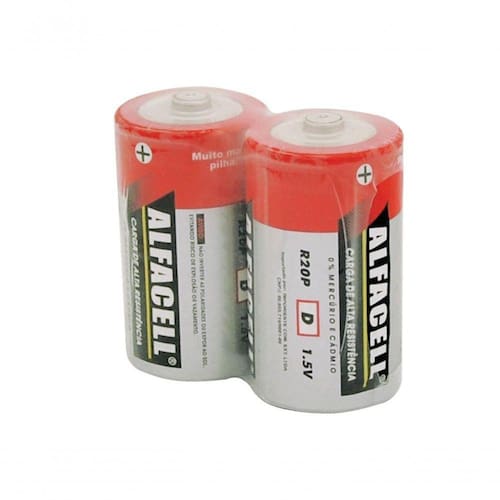MARCA: ALFACELLMODELO: R20P2SCESPECIFICAÇÕES:Pilha Comum Gd. 1.5V Alfacell.Cartela com 2 pilhas.Tubo com 12 unidades.
