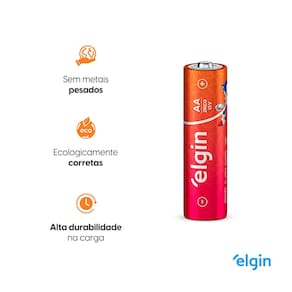 As pilhas de zinco AA da Elgin do mascote Sonic são têm voltagem de 1.5V e são perfeitas para brinquedos, controle remotos, lanternas e outros aparelhos que requerem descargas de energia rápidas e fortes. Unindo economia e qualidade, as pilhas Elgin foram aprovadas em todos os quesitos e têm ótima relação custo/benefício. Assim, você economiza e ainda conta com pilhas de alta qualidade. Além disso, foram testadas e aprovadas, entre 11 marcas de pilhas do mercado avaliadas em testes do INMETRO, as pilhas Elgin apresentaram um resultado excelente na relação custo por hora útil e não agridem o meio ambiente porque têm 0% de metais pesados em sua composição.
