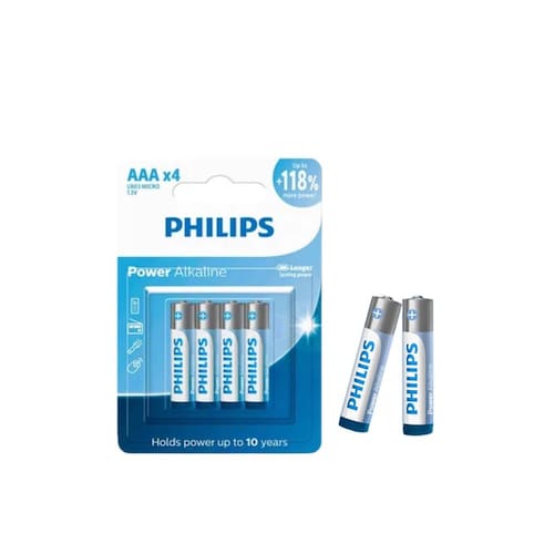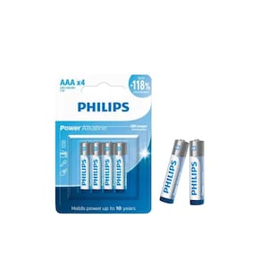 Características: - Marca: Philips - Modelo: LR03P4B-59 - Composição química: Alcalina - Tipo da embalagem: PET blister - Tipo da bateria: AAA / LR03 alcalina - Tensão da pilha: 1.5 volt - Intercambiável com: AAA, LR03, AM4, 24A, MN2400 - Tempo de armazenamento: Idade: 10