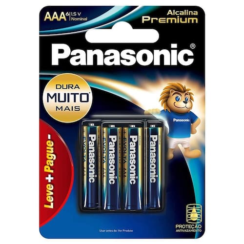 A Pilha Premium Panasonic AAA são desenvolvidas especialmente para o uso em brinquedos motorizados, lanternas, consoles de jogos portáteis, controles remotos, CD players, etc.