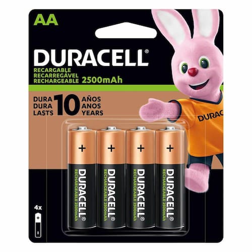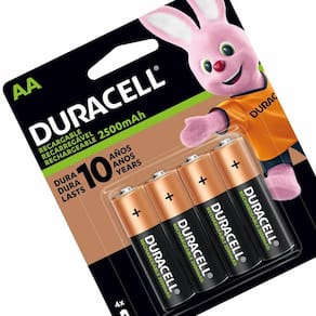 Recarregue as suas pilhas recarregáveis Duracell até 400 vezes. Elas são compatíveis com os aparelhos utilizados regularmente, como um mouse sem fio ou uma babá eletrônica, e possuem garantia de 3 anos fora de uso. Essas pilhas poderosas funcionam em qualquer carregador NiMH e estão disponíveis nos tamanhos AA.