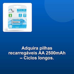 A qualidade é um reflexo do nosso compromisso com a satisfação dos nossos clientes. Cada membro da nossa equipe compartilha o mesmo objetivo: fornecer produtos que você possa confiar e se orgulhar de utilizar. Com o blister com 2 pilhas AA 2500mAh, você pode ter certeza de que está fazendo uma compra inteligente e segura. Desfrute da confiabilidade e eficiência das pilhas recarregáveis AA 2500mAh CB053, projetadas para oferecer mais de 1.000 ciclos de recarga. Sem efeito de memória, você pode carregar e descarregar sem preocupações, garantindo um desempenho consistente em todos os seus dispositivos.