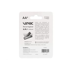 Pilha Recarregável Aa C/4 - 2200mah 1.2v - Vp2ab4r PILHA RECARREGÁVEL AA C/4 - 2200MAH 1.2V - VP2AB4R As pilhas e baterias Vinik são a escolha perfeita para diversas situações, oferecendo desempenho confiável e durabilidade para todos os tipos de dispositivos. Seja para controles remotos, videogames, lanternas, sensores, brinquedos ou muitos outros aparelhos, nossas pilhas garantem energia quando você mais precisa. Disponíveis em uma ampla variedade de tipos e tamanhos, projetadas para atender às suas necessidades com eficiência e qualidade. Mais potência por menos preço. Características Tipo: Recarregável Tamanho: AA Voltagem: 1,2V Blister: 4 unidades PILHA RECARREGÁVEL AA C/4 - 2200MAH 1.2V - VP2AB4R As pilhas e baterias Vinik são a escolha perfeita para diversas situações, oferecendo desempenho confiável e durabilidade para todos os tipos de dispositivos. Seja para controles remotos, videogames, lanternas, sensores, brinquedos ou muitos outros aparelhos, nossas pilhas garantem energia quando você mais precisa. Disponíveis em uma ampla variedade de tipos e tamanhos, projetadas para atender às suas necessidades com eficiência e qualidade. Mais potência por menos preço. Características Tipo: Recarregável Tamanho: AA Voltagem: 1,2V Blister: 4 unidades Ean: 7908445435841