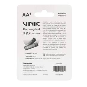 Pilha Recarregável Aa C/4 - 2200mah - Vp2ab4r PILHA RECARREGÁVEL AA C/4 - 2200MAH - VP2AB4R As pilhas e baterias Vinik são a escolha perfeita para diversas situações, oferecendo desempenho e durabilidade para todos os tipos de dispositivos. Seja para controles remotos, videogames, lanternas, sensores, brinquedos ou muitos outros aparelhos, nossas pilhas garantem energia quando você mais precisa.