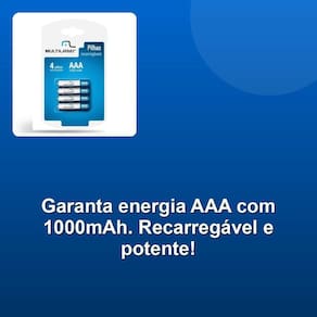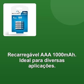Pilha Recarregável Aaa 1000mah C/ 4 Um poder da sua pilha recarregável AAA 1000mAh, modelo CB050. Com tensão de 1,2V e alta capacidade de 1000mAh, esta pilha é capaz de fornecer uma vida útil de aproximadamente 1000 ciclos de cargas. Além disso, é compatível com carregadores rápidos, garantindo que você possa utilizar sua pilha rapidamente. Sem efeito de memória, você pode carregar sua pilha quando quiser, sem comprometer sua performance. O tempo de carga é de apenas 15hrs a 250mA no modo padrão, e 5hrs a 750mA no modo rápido. Isso significa que você pode ter sua pilha pronta para uso em questão de horas.