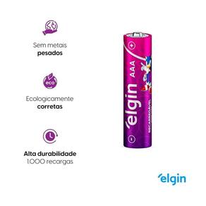 4 Pilhas Recarregáveis AAA 900mAh Elgin – Energia Sustentável e Econômica em Dobro As pilhas recarregáveis Elgin AAA 900mAh unem eficiência energética e respeito ao meio ambiente. Ideais para dispositivos de baixo a médio consumo, como controles, mouses, brinquedos e lanternas. O blister com 4 unidades oferece praticidade e ótimo custo-benefício. Detalhes Técnicos• Marca: Elgin• Modelo: AAA 900mAh• Tipo: Pilha recarregável• Tamanho: AAA (palito)• Capacidade nominal: 900mAh• Voltagem: 1,2V• Tecnologia: Níquel-Hidreto Metálico (Ni-MH)• Recarregável: Sim• Ciclos de recarga: Até 1000 recargas (com uso adequado)• Aplicações indicadas: Controles remotos, brinquedos, mouses e teclados sem fio, lanternas, relógios e outros eletrônicos de uso contínuo• Peso unitário: Aproximadamente 13 g• Origem: Nacional Vantagens:Reutilizáveis até 1000 vezesRedução de resíduos e economia a longo prazoCompatíveis com carregadores padrão Ni-MHAlta eficiência energética para uso diário As pilhas Elgin AAA 900mAh recarregáveis são a escolha ideal para quem deseja reduzir custos e contribuir com o meio ambiente. Com 4 unidades por blister, são perfeitas para o uso doméstico ou profissional, oferecendo potência constante e durabilidade em qualquer ocasião.