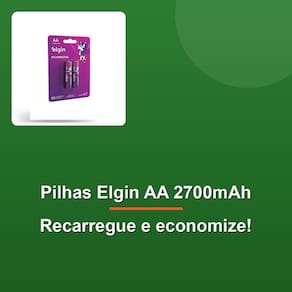 Com uma garantia de 180 dias e um peso de apenas 0,024 kg, essas pilhas recarregáveis AA 2700mAh blister com 4 unidades são uma escolha prática e ecológica para seu dia a dia. Aqui vai uma descrição de produto atraente e estruturada para o produto Pilha recarregável Elgin AA 2700mAh blister com 4: