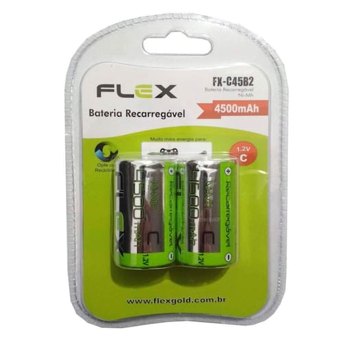 2 Pilhas Recarregáveis Tipo C Média 4500mah Flex