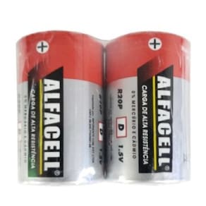 As pilhas Alfacell do tipo D com a voltagem de 1,5V são ideais para lanternas, brinquedos, entre outros eletrônicos. Elas vêm em uma embalagem economia com duas unidades