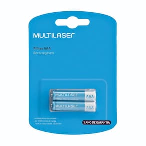 Muitos equipamentos eletrônicos necessitam de pilhas para o seu funcionamento. Como por exemplo as câmeras fotográficas, principalmente as profissionais que não podem ficar descarregadas no meio de um evento. Pensando nisso, a Multilaser trouxe um kit com 2 pilhas recarregáveis. Faz aproximadamente 1.000 ciclos de recarga e não tem efeito memória. Ideal para câmeras digitais, reprodutores de áudio, rádios intercomunicadores, GPS e outros equipamentos. As Pilhas Recarregáveis CB051 AAA 1000mAh podem ser utilizadas em qualquer aparelho que use o formato AAA. Carregue-as quando necessário para ter sempre em mãos pilhas com cargas, evitando precisar correr atrás de última hora.