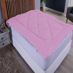 Pillow Top Extra Macio Para Colchão Casal Padrão de 1,38 x 1,88 até 0,50cm de altura. COR ROSA Descrição: contém na embalagem 01 pilow Casal Padrão medidas indicadas para camas 1,38m x 1,88m indicada para colchão até 0,50cm de altura anti alérgico tecido Micropercal 100% poliéster enchimento manta sofit 600 gramatura altura do Pilow 0,05cm