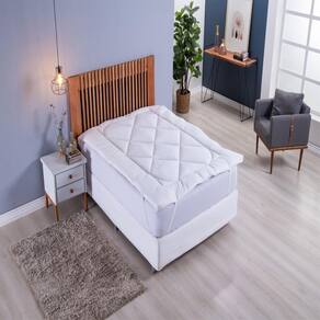 Pillow Top Extra Macio Para Colchão King Size de 1,93 x 2,03 até 0,50cm de altura. COR BRANCO Descrição: contém na embalagem 01 pilow top King Size medidas indicadas para camas 2,03mx1,93m indicada para colchão até 0,50cm de altura anti alérgico tecido Micropercal 100% poliéster enchimento manta sofit 600 gramatura altura do Pilow 0,05cm O pillow top é uma camada dupla face usa-se dos dois lados acolchoada adicional que é anexada ao topo de um colchão para proporcionar uma sensação de luxo e conforto extra. Em suas 4 pontas contem elástico para que possa ficar preso no colchão Projetado para criar uma superfície de dormir suave e almofadada, proporcionando uma sensação de afundamento suave ao deitar-se. Ele é fixado no topo do colchão, formando uma camada adicional que fica sobre a superfície do colchão principal. Uma das principais vantagens do pillow top é o conforto adicional que ele oferece. Ele pode ajudar a aliviar a pressão sobre pontos do corpo, como ombros, quadris e joelhos, proporcionando um sono mais tranquilo e confortável. Além disso, o pillow top pode adicionar uma camada de isolamento térmico, ajudando a regular a temperatura do colchão durante a noite. Ideal para melhorar a qualidade do seu colchão e do seu sono. É útil também para hotéis, viagens, pescarias. Muito prático e fácil de utilizar. Marca: Não Informado