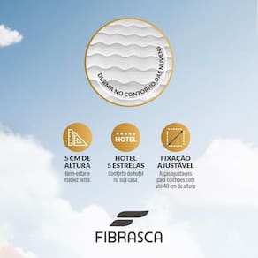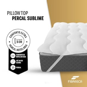 O Pillow Top Percal Sublime Fibrasca foi desenvolvido para trazer o conforto do colchão de hotel para casa. Com o revestimento superior em percal 180 fios tipo hotelaria, 65% algodão e 35% poliéster, traz um frescor e durabilidade maior devido a tecelagem plana feita neste tecido. E a parte inferior em microfibra peletizada com acabamento em matelassê oferecendo muito mais conforto e suavidade ao toque podendo usar o produto dos dois lados. O Pillow top Percal Sublime Fibrasca tem 5cm de altura e possui alças ajustáveis para colchões com até 40cm de altura é o produto ideal para quem busca maciez e suavidade na hora do descanso.