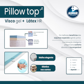 Nosso Pillow Top Visco Gel + Látex Hr , suporta qualquer peso.