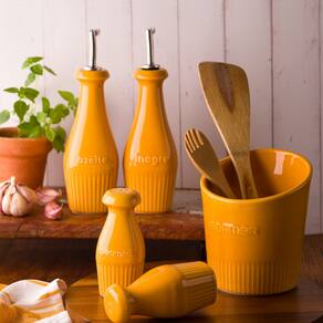 Pimenteiro Em Porcelana Assar E Servir 5,5x13cm Germer Amarelo - Características Gerais do Produto: • Dimensões: 5,5x5,5x13cm • Material Principal: Porcelana • Linha: Assar e Servir • Informações Adicionais: Lavar com detergente neutro e esponja macia; Secar imediatamente; Não utilizar nenhum tipo de produto químico