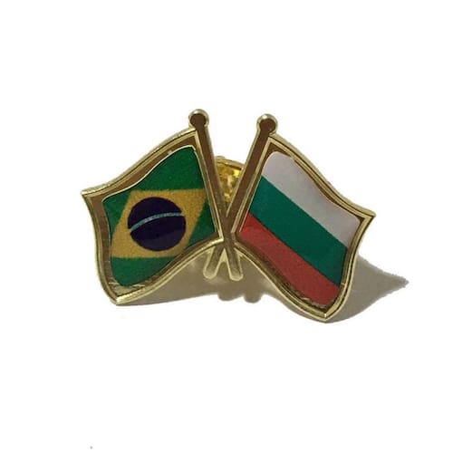 Pin Da Bandeira Do Brasil X Bulgária Pins das bandeiras do Brasil cruzada com outros países Feitos em Latão, com excelente acabamento. As bandeiras são resinadas. Dimensões: 2x1,5 cm - Cada bandeira mede 1x1 cm Pode ser aplicado em todo tipo de roupas, malas e mochilas Acompanham a presilha para prender Marca: Mundo Das Bandeiras