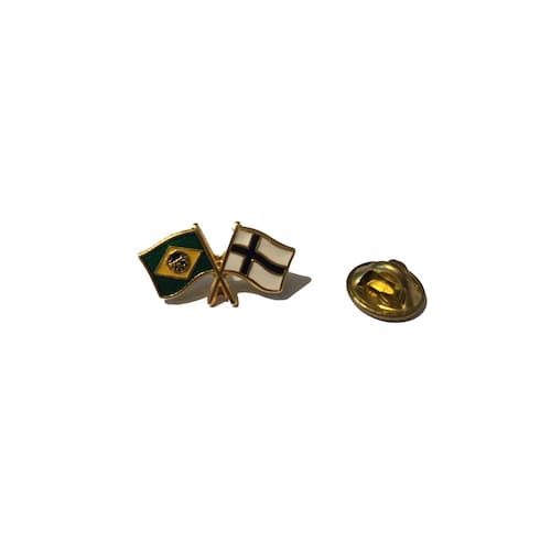 Pins das bandeiras do Brasil cruzada com outros países Feito em latão e pintados em esmalte com excelente acabamento dimensões: 2 x 1 cm pode ser aplicado em todo tipo de roupas, malas e mochilas Acompanham a presilha para prender Marca: Mundo Das Bandeiras