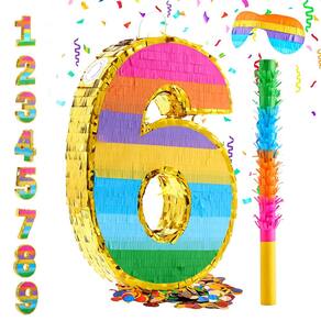 - Decorações de aniversário perfeitas: decore a festa de aniversário de suas meninas ou meninos com esta pinhata número 6 de cor brilhante que combina com bordas de folha de ouro brilhante mais 3D. É uma maneira divertida e única de interagir com convidados em uma festa. As crianças ficarão encantadas em ver esta pinhata visualmente atraente em sua festa de aniversário.