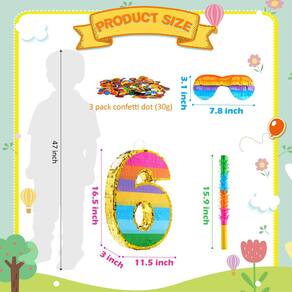 - Pacote completo: inclui 1 pinhata número 6 arco-íris, 1 palito, 1 venda e confetes de 30 g que podem ser preenchidos dentro da sua piñata. Adiciona um toque vibrante ao seu aniversário ou festa temática de festa. Peça nossa piñata número 6 com confiança e ofereça uma garantia vitalícia!