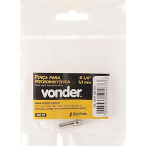 A pinça de 3,2mm da Vonder é a escolha ideal para quem busca precisão e ao trabalhar com microrretíficas. Fabricada com materiais de alta qualidade, esta pinça garante uma fixação firme e estável dos acessórios, permitindo que você execute seus projetos com confiança e eficiência. A Vonder é uma marca reconhecida no mercado por sua excelência em ferramentas e acessórios, oferecendo produtos que atendem às necessidades dos profissionais mais exigentes. Com esta pinça, você poderá realizar trabalhos detalhados e complexos, aproveitando ao máximo o potencial da sua microrretífica. Seja para ou hobby, a pinça Vonder é um acessório indispensável para quem busca resultados de alta qualidade. Além disso, a pinça é com uma ampla de microrretíficas, garantindo versatilidade e praticidade no seu dia a dia.