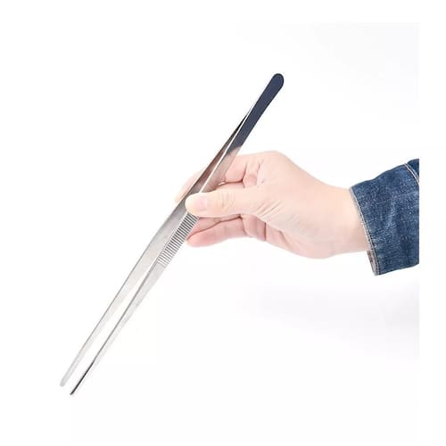 Pinça Culinária Em Aço Inoxidável Pegador 30cm | Mimo StyleA Pinça Culinária 30cm da Mimo Style, além de ser super pratica, é um item indispensável em sua cozinha com sua característica multiuso!- MATERIAL EXCELENTE: A sua resistência à corrosão e propriedades higiênicas e estéticas fazem do aço inox um material muito atrativo, além de manter suas propriedades mesmo quando submetida a elevadas ou baixas temperaturas. Reciclável e de grau alimentício.- DESIGN: Feita em aço inoxidável, a pinça culinária possui um formato ergonômico e confortável. Usando nossa pinça você terá mais precisão para cozinhar ou então empratar seus pratos.- MULTIUSO: Nossa pinça culinária pode ser utilizada para colocar a comida com precisão no prato, fazendo com que a comida fique mais bonita, pode ser utilizado para pescar uma azeitona pequena no pote ou para virar a carne com facilidade e segurança.- SEGREDO DO CHEF PROFISSIONAL: Nossa pinça culinária é adequada para empratar alimentos pequenos e delicados como caviar, grãos de milho, pinhões e outros alimentos. Podem ser usadas em bares, restaurantes, padarias e também em casa para uso doméstico.- FÁCIL HIGIENIZAÇÃO: Produtos indicados para a limpeza do inox são: detergentes suaves e/ou neutro e água morna. Aplique com um pano macio ou uma esponja de nylon, enxague e seque. Não utilize produtos abrasivos e palha de aço.Especificações Técnicas:Material: Aço InoxidávelDimensões (C x L x A): 1 x 1,5 x 30cmPeso: 75g