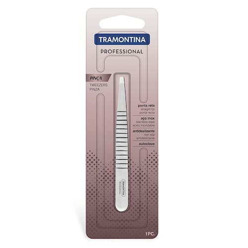 Informações Gerais: Pinça em aço inox com textura antideslizante que proporciona maior firmeza. Design ergonômico e exclusivo da Tramontina que facilita o manuseio. Ideal para fios médios e longos. Ideal para limpar o contorno da sobrancelha e retirar o excesso. A ponta reta é indicada na remoção de pelos em maior quantidade. Prende o pelo sem cortá-lo. Esterilizável em autoclave.