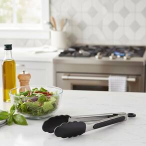 Marca: Cuisinart Modelo: CTG-00-9STN Cor: Preta Comprimento: 23 cm Material do corpo: Aco inox Material das extremidades: Silicone Garantia: 3 meses