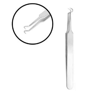 A pinça de inox com ponta curva é ideal para a aplicação de cílios na técnica fio a fio.