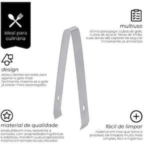 AC12514A Pinça Pegador para Gelo foi produzida em inox na cor prata, resistente e de alta qualidade com designer moderno e sofisticado ao seu ambiente.A Pinça Pegador para Gelo é prática e versátil, podendo ser utilizada em casa, bares e restaurantes para o manejo de gelo ou qualquer outro tipo de alimento, é útil, durável e funcional, perfeita para compor seus utensílios com muito charme.