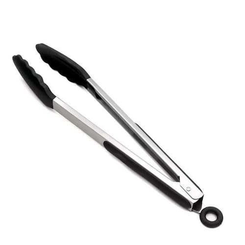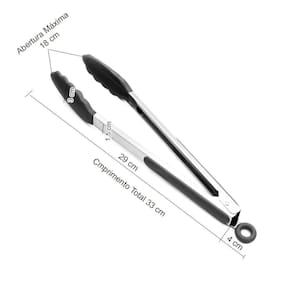 Pinça Pegador Multiuso de Silicone 29,5 cm Preto Pinça Pegador De Silicone 29,5 Cm.