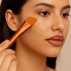 Aplique a quantidade desejada de base diretamente no dorso da mão ou na pele. Com o Pincel Angular Para Base Mari Maria Makeup MM-104, pegue uma pequena quantidade do produto e espalhe suavemente sobre o rosto, começando do centro para as extremidades. Utilize movimentos leves e arrastados ou batidinhas para um acabamento mais construído e uniforme. O formato angular facilita o alcance de áreas como o nariz e abaixo dos olhos.