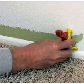 O Pincel equipado com defletor amarelo, o que faz com que a escova se encaixe na parede e apara facilmente. A aplicação é reta e uniforme, criando uma borda limpa na parede sem pintar.