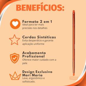 Com seu design inovador, o Pincel MM-205 permite a aplicação precisa de produtos em áreas delicadas do rosto, como contornos, sombras e canto interno dos olhos. Suas cerdas macias e sintéticas garantem conforto e um resultado profissional, transformando qualquer look, do clássico ao artístico, com facilidade e qualidade.