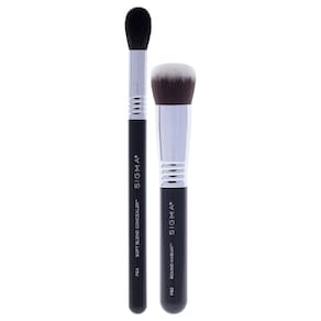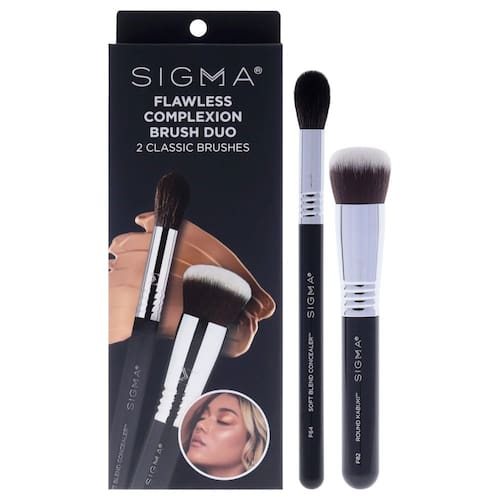 Pincel de pele impecável Duo da SIGMA para mulheres — 2 peças de pincel redondo de kabuki — F82, pincel corretivo Soft Blend — F64 —