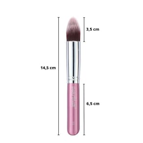 Especialmente desenvolvido para aplicar e distribuir base líquida ou cremosa e corretivo nas áreas de mais difícil acesso da face. Feito com cerdas especiais que permitem uma aplicação suave a maquiagem uniforme.