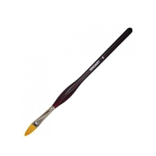 Pincel Língua de Gato Sinoart Sintético Número 8 Pincel Sinoart língua de gato é um pincel produzido com pelo sintético de altíssima qualidade e durabilidade, suas cerdas proporcionam ao mesmo tempo firmeza e maleabilidade. Com seu tradicional cabo ergonômico triangular exclusivo no Brasil este pincel proporciona ume melhor empunhadura ao artista. Cabo curto, virola niquelada. O próprio pincel é uma obra de arte.