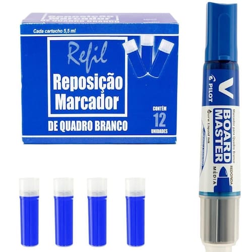 características do produto: - cartucho para recarga do marcador wbma - vbm - m - board master; - tinta especial para quadro branco; - conteúdo - 5,5 ml; - caixa com 12 unid. Compre de quem está a mais de 9 anos no mercado com 100% de clientes satisfeitos